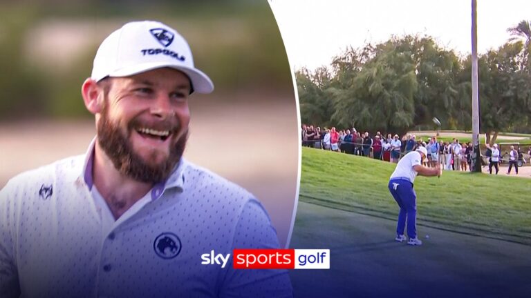 Tyrrell Hatton plays the 17th hole at the Hero Dubai Desert Classic with an incredible chip-in. Source link
