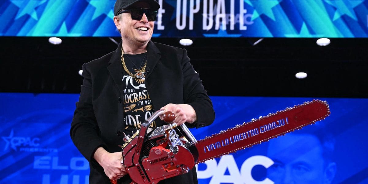 Elon Musk held a chainsaw reading “Live Live Freedom, Damn” at the annual Conservative Political Action Conference (CPAC) at the Gaylord National Resorts and Convention Center in Oxon Hill National Harbor, Maryland on February 20, 2025.