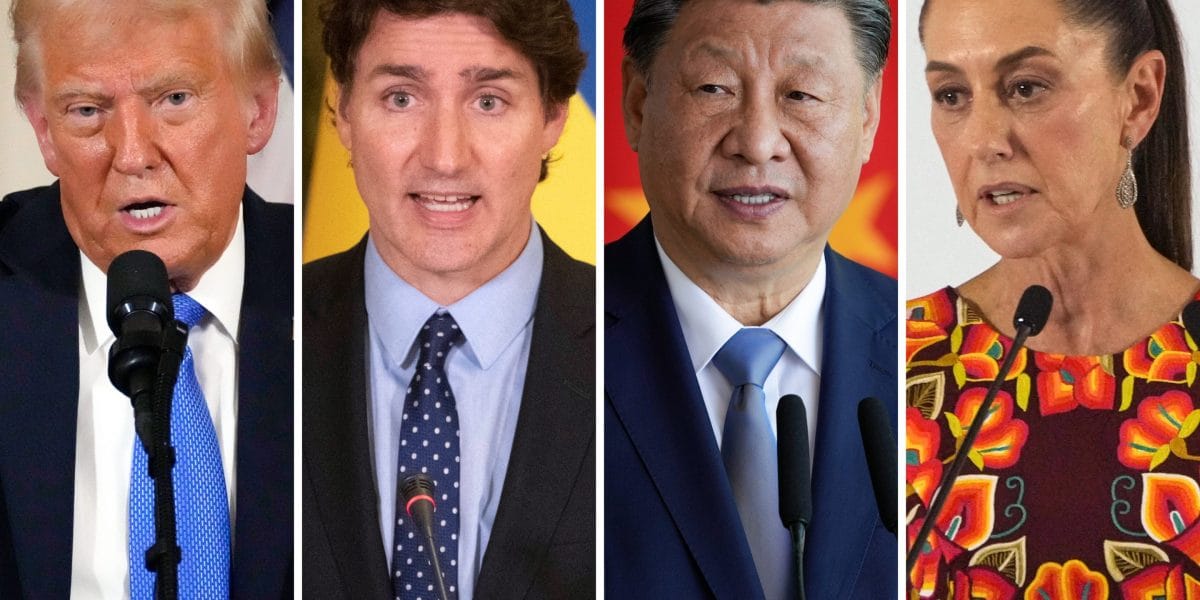 US President Donald Trump in Palm Beach, Florida, February 7, 2025 Canadian Prime Minister Justin Trudeau in Kyiv, Ukraine, June 10, 2023 China in XI Jinping in Brasilia, Brazil, November 20, 2024, Mexico President Claudia Sheinbaum in Mexico, Claudia Sheinbaum in Mexico, June 27, 2024, June 27, 2024.
